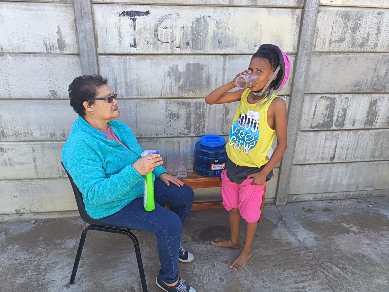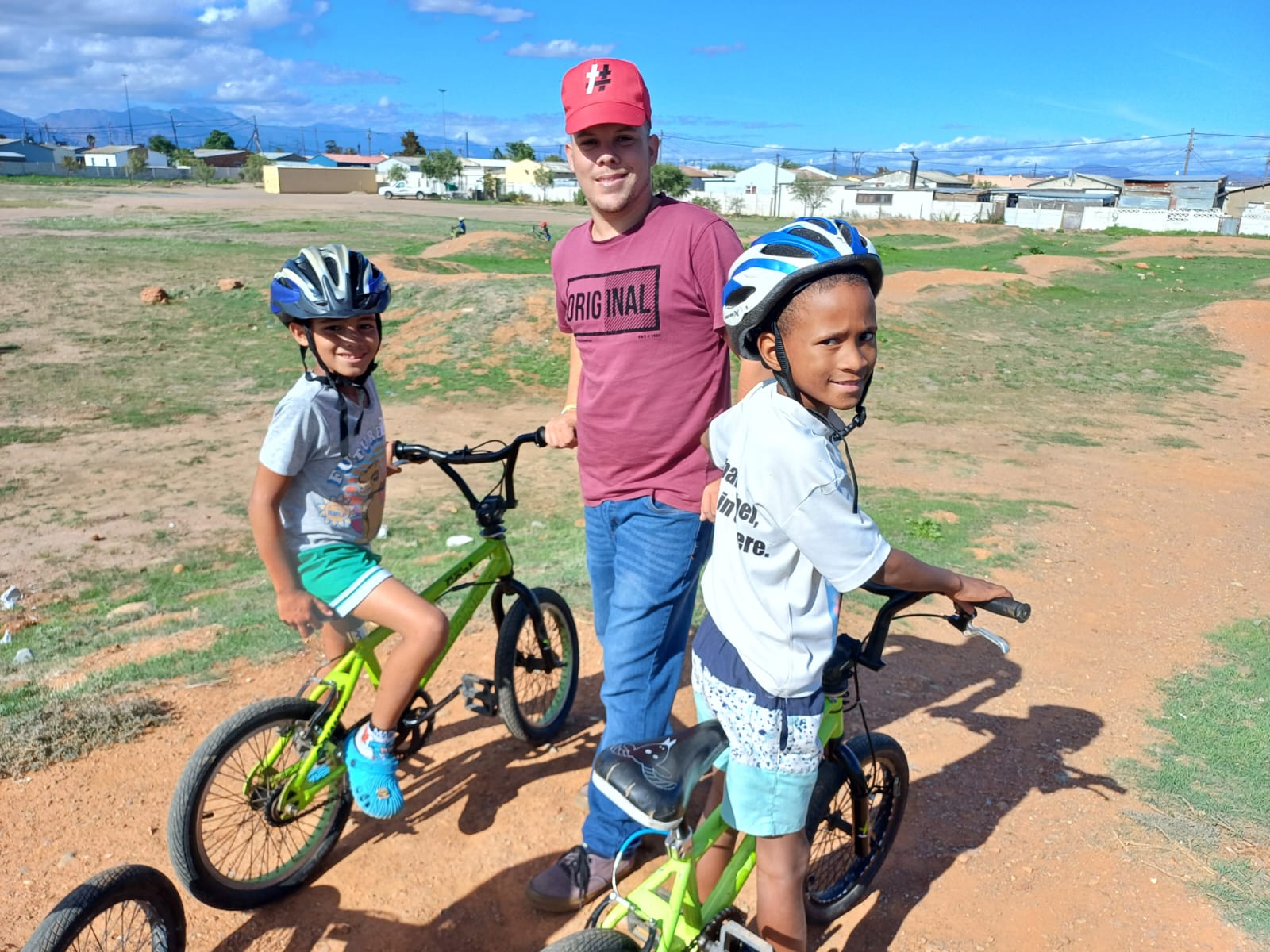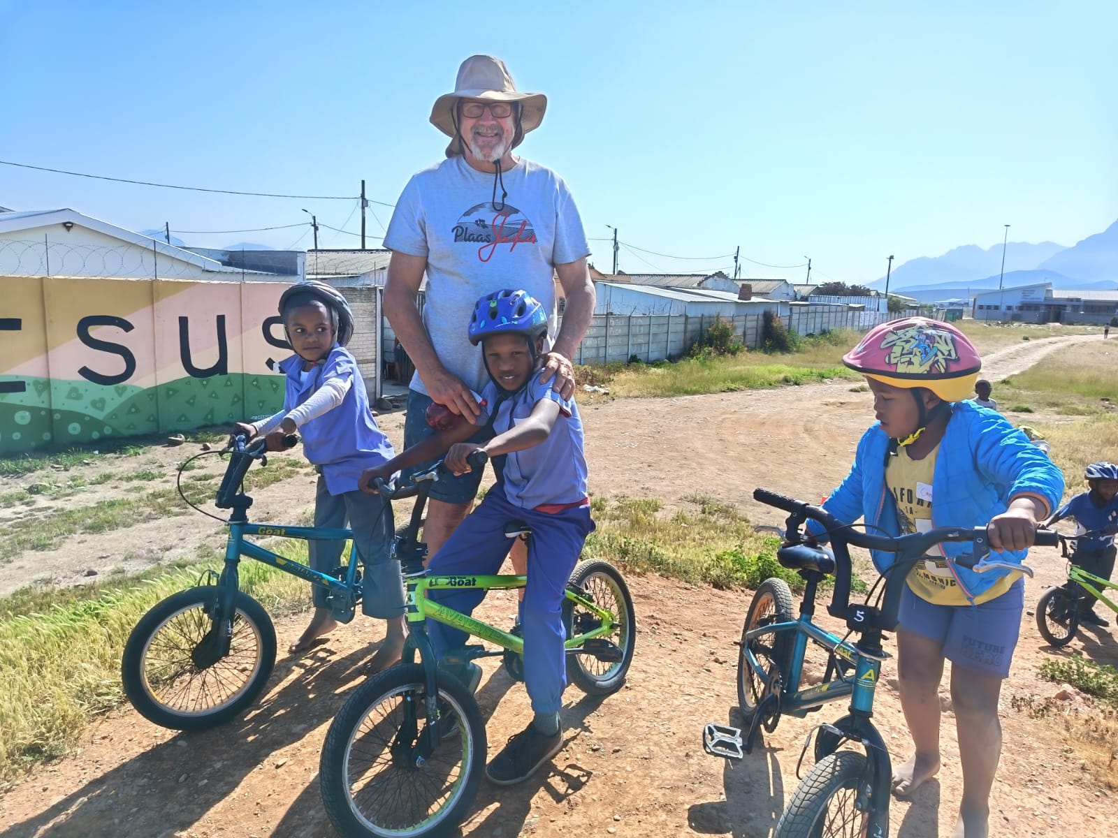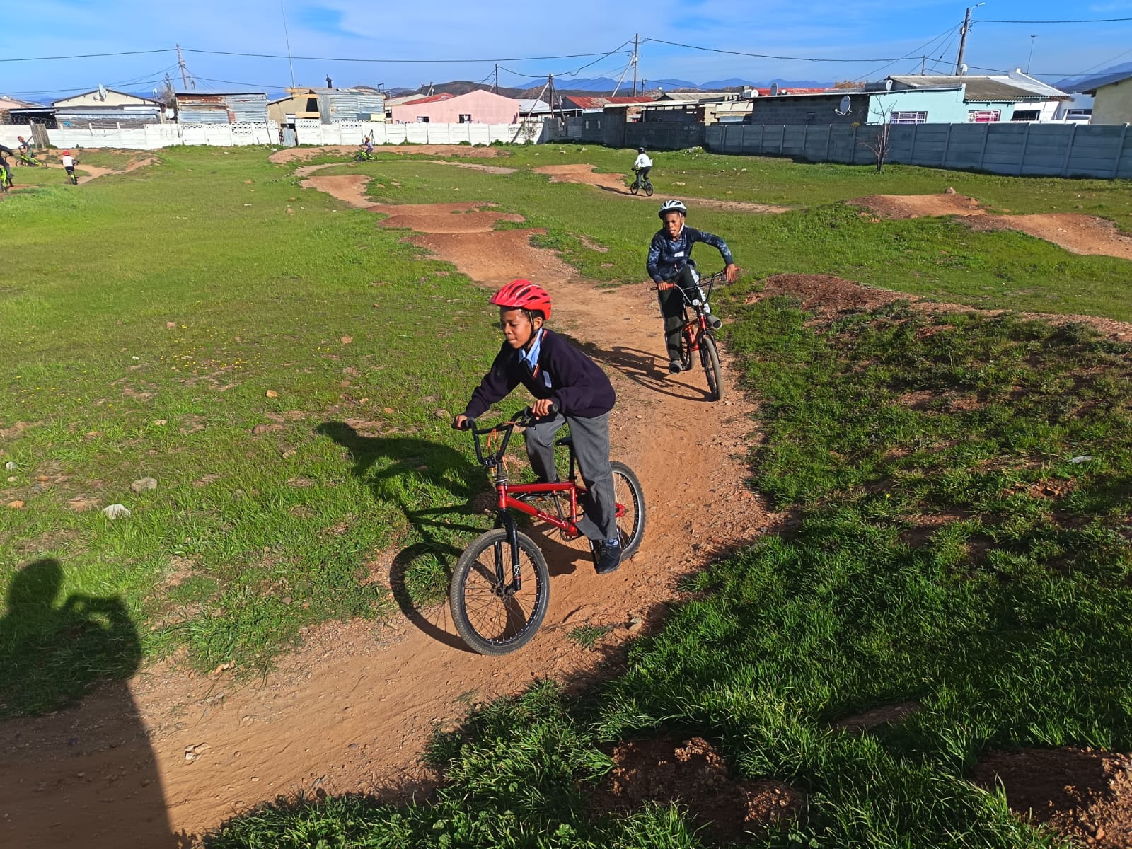 They literally come running in their school uniforms when they see the trailer with the BMX bicycles appear. After they register, each child gets a helmet and a turn to ride.